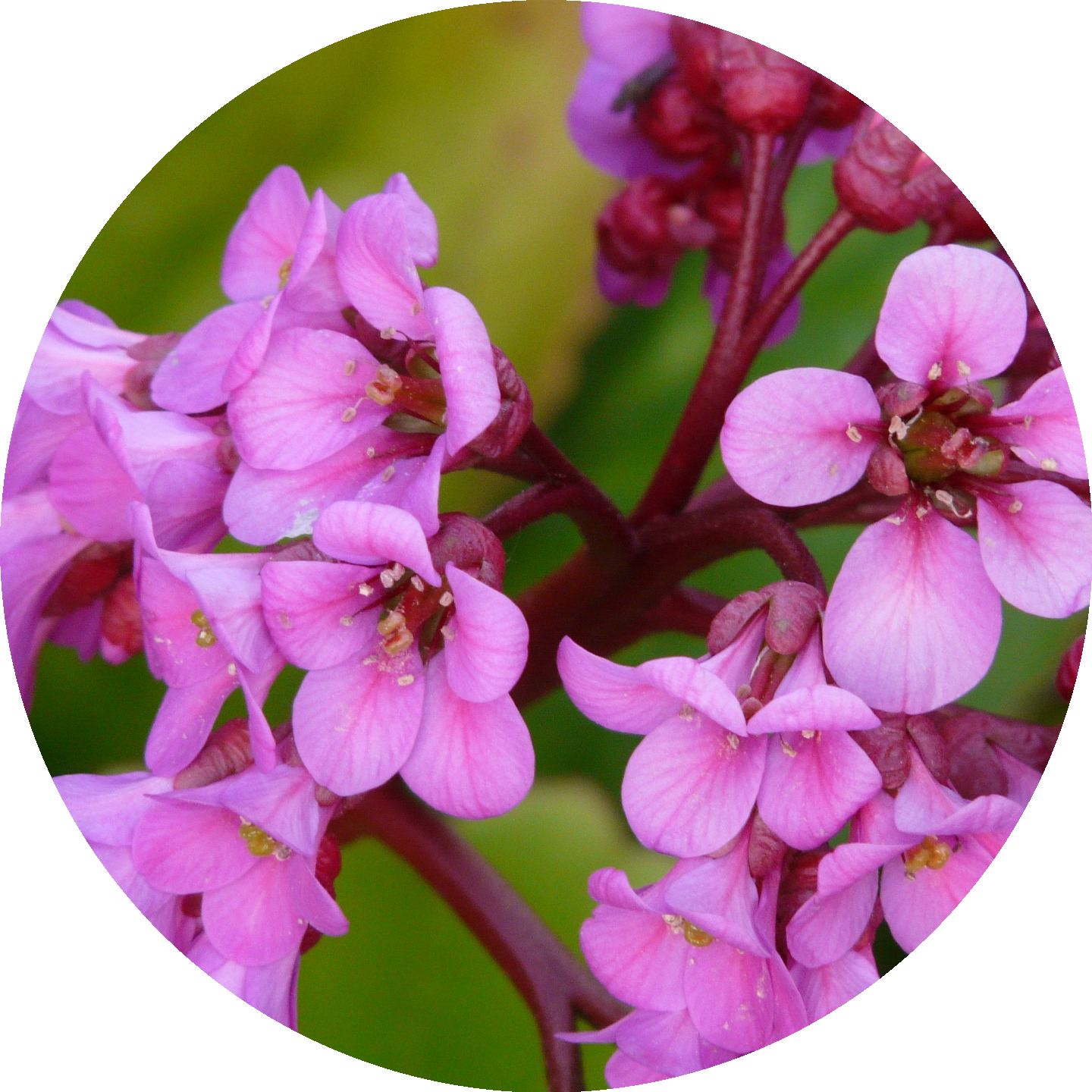 auch Wickelwurzen genannt, sind eine Pflanzengattung aus der Familie der Steinbrechgewächse (Saxifragaceae). Die Bergenia-Arten sind in den zentral- und ostasiatischen Gebirgen beheimatet. Als frostharte Bodendecker, Steingartenpflanzen oder Zierstauden werden Bergenien-Sorten in Parks und Gärten gepflanzt. Bergenien-Arten sind immergrüne bis sommergrüne, ausdauernde krautige Pflanzen. Sie bilden mit dicken, oft sehr flach streichenden Rhizomen große Bestände.